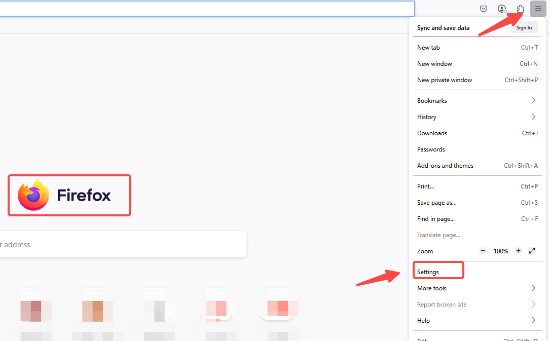 1.Open the browser, click "Menu bar" - "Settings" in the upper right corner.