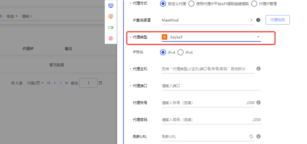4、选择“代理类型”,并将代理类型设置为 Socks5。