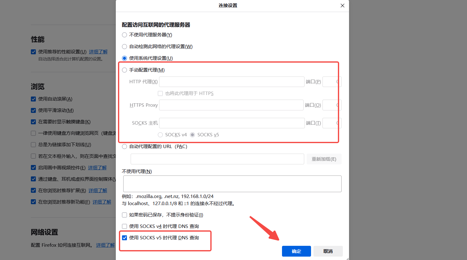 4、勾选“使用 SOCKS v5 时代理 DNS”并确认