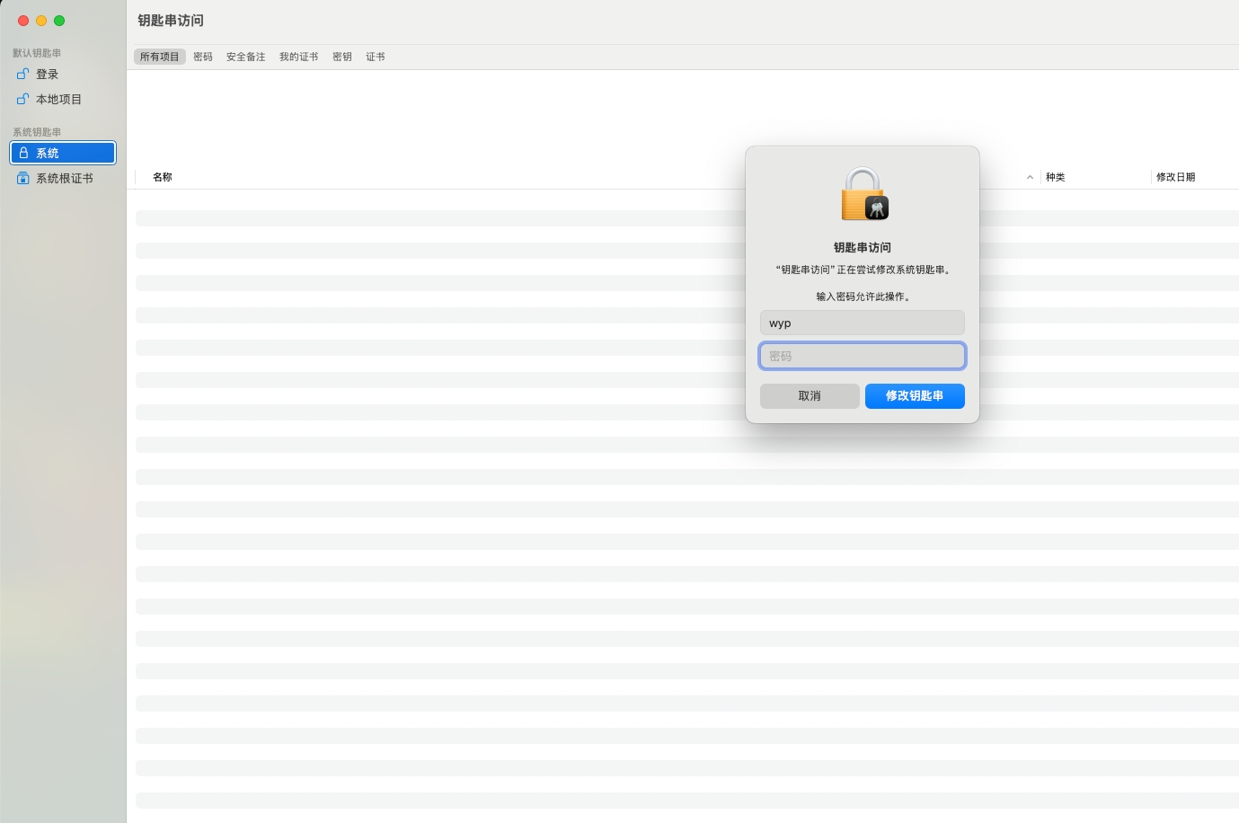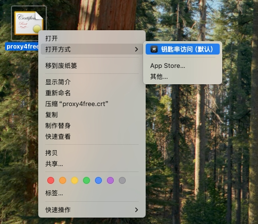 2、右击证书,在“打开方式”中选择“钥匙串访问”,然后在弹出的对话框中输入开机密码